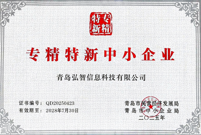 青島弘智信息科技有限公司再度榮膺"專精特新中小企業"稱號——以創(chuàng)新驅動發(fā)展,以專業鑄就卓越